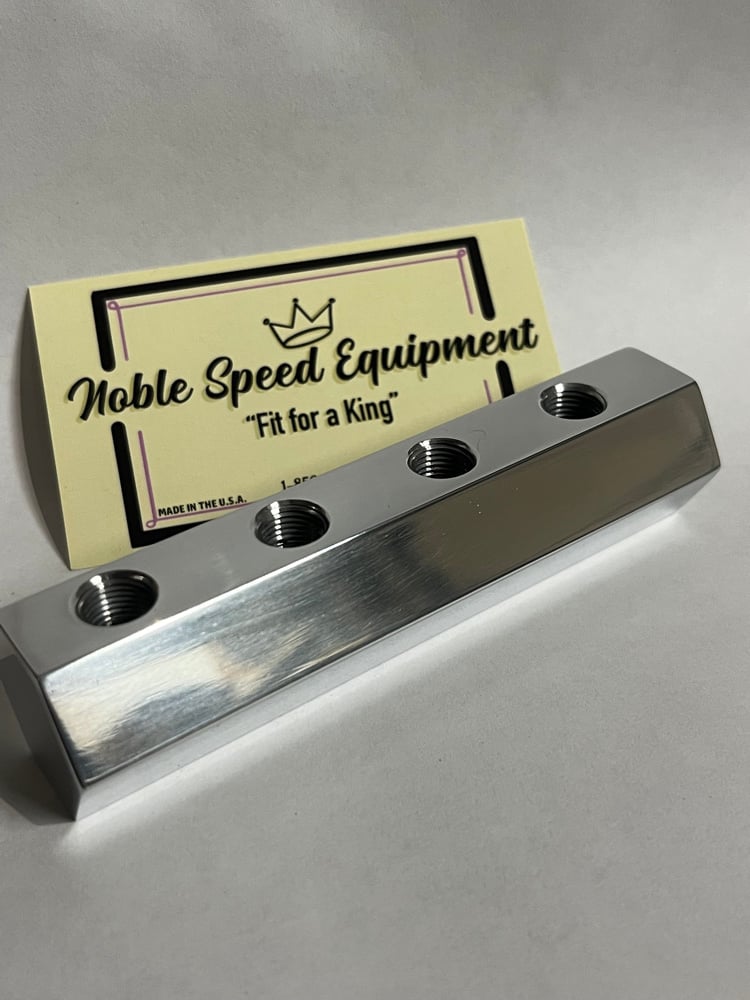 hex fuel block …. 1 inch flat to flat … 1/4NPT inlet & 1/8 NPT outlets … polished nicely but not flawless or “show” polished. Measures 4-1/4 long.